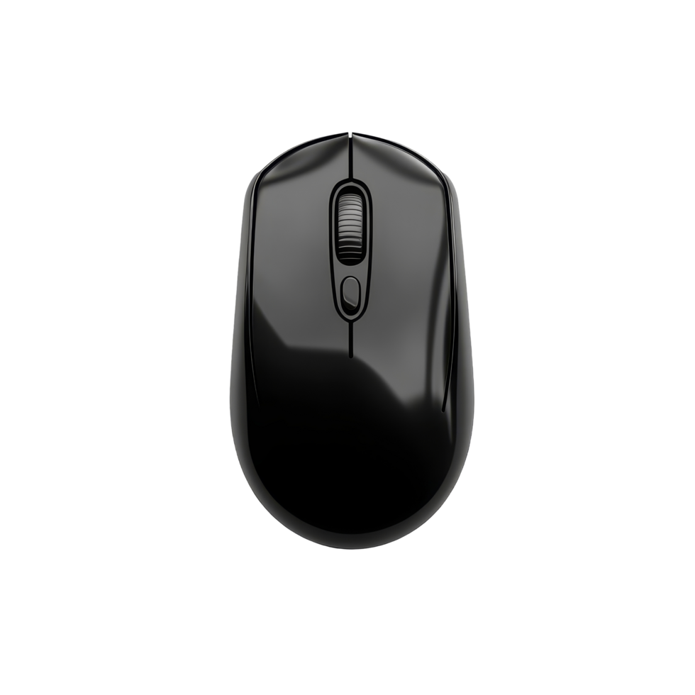 A black computer mouse placed on a clean transparent background showcasing its sleek and modern design for tech enthusiasts and professionals, computer mouse on transparent backgroundfile png