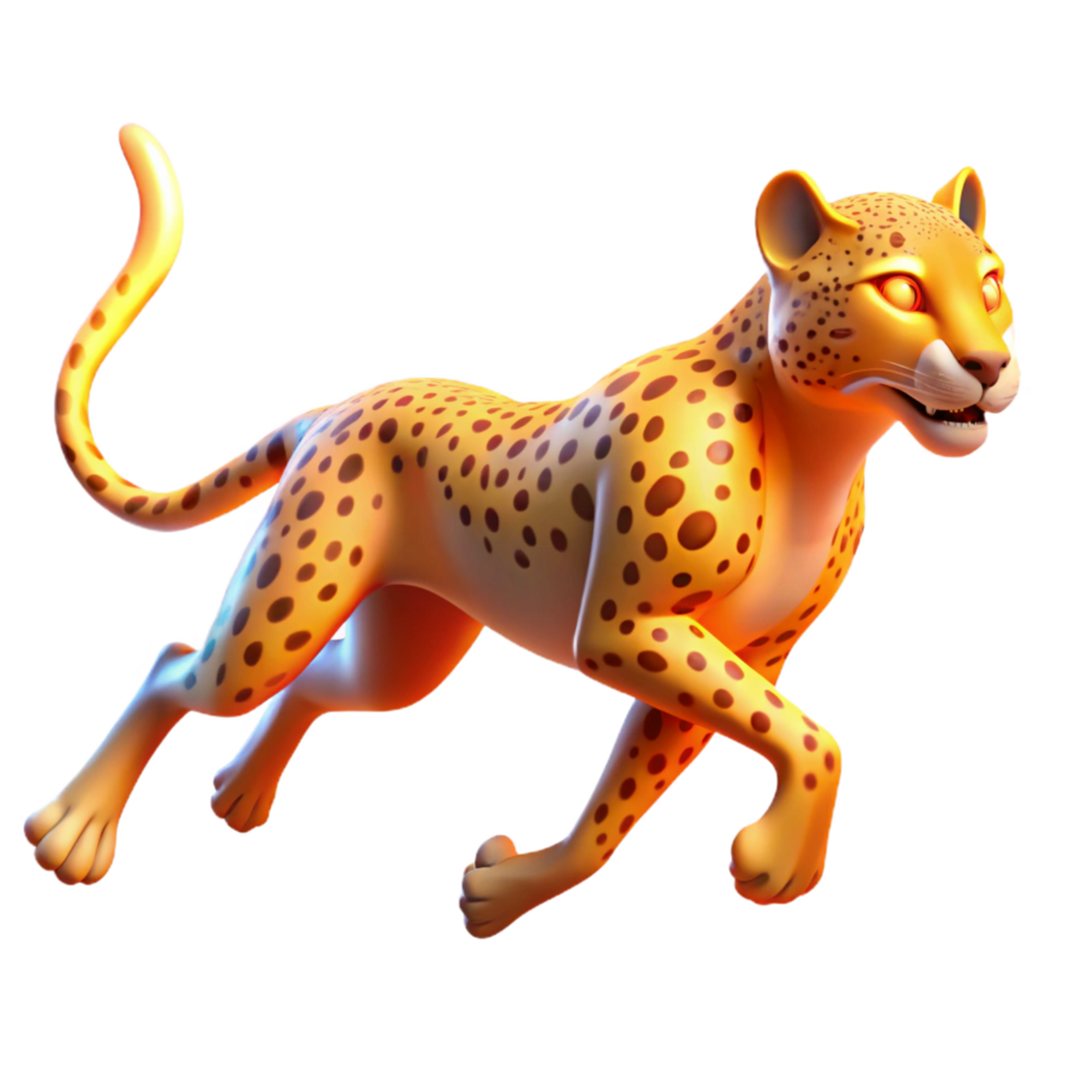 Cheetah in Motion 3D Animation A dynamic 3D animation of a cheetah in motion, capturing its speed and grace. Free PNG