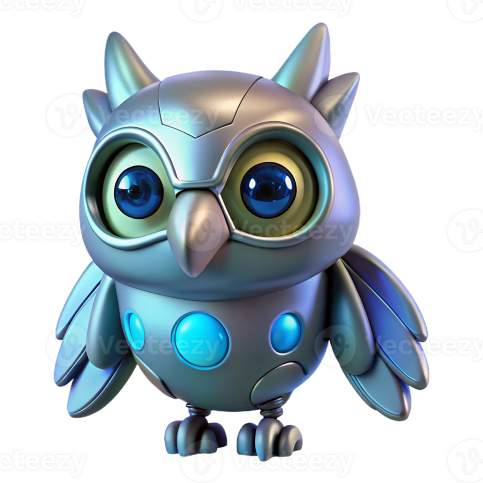 Cybernetic Owl Robot 3D Render - A futuristic 3D render of an owl with cybernetic elements showcasing advanced mechanical design and sleek features Pro PNG