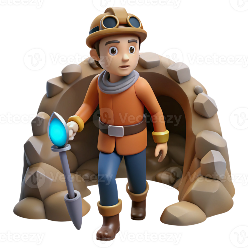 Miner Exploring Cave Three Dimensional Render in a Dynamic Scene of Adventure Pro PNG