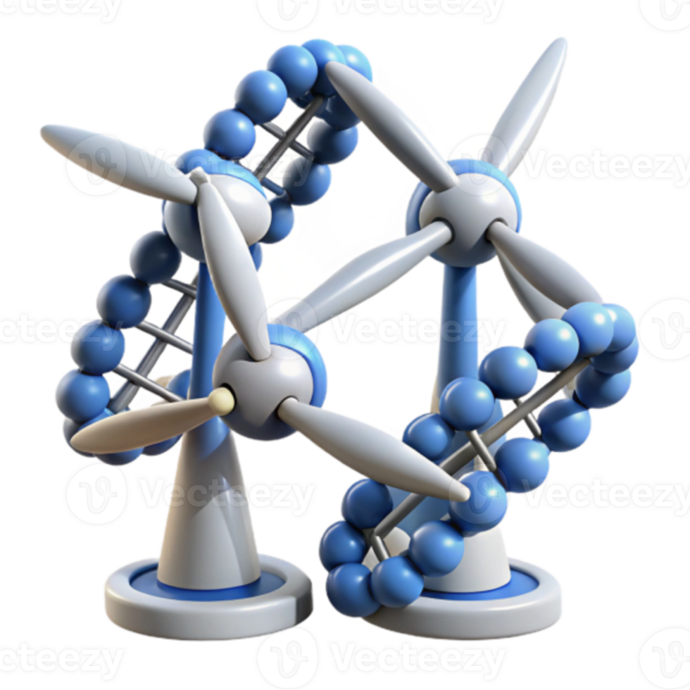 3D Render of Abstract Molecular Structure with Rotating Propellers Pro PNG