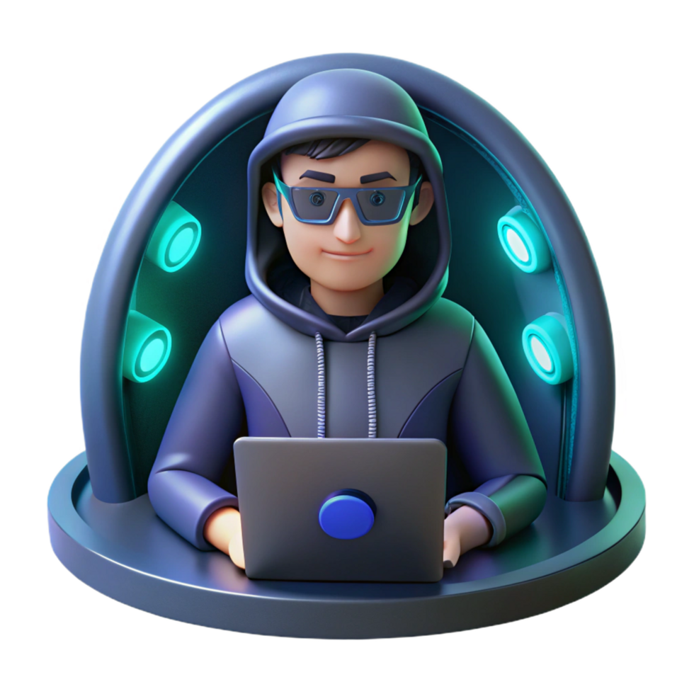 Cybersecurity Expert A 3D Rendering of a Hacker Working on a Laptop Free PNG