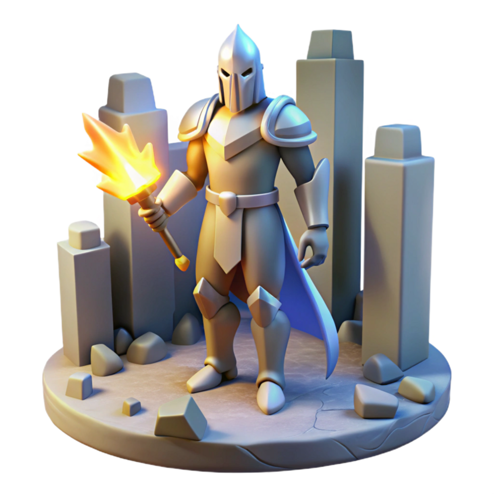 3D Render of a Knight with Flaming Torch in Urban Setting Free PNG