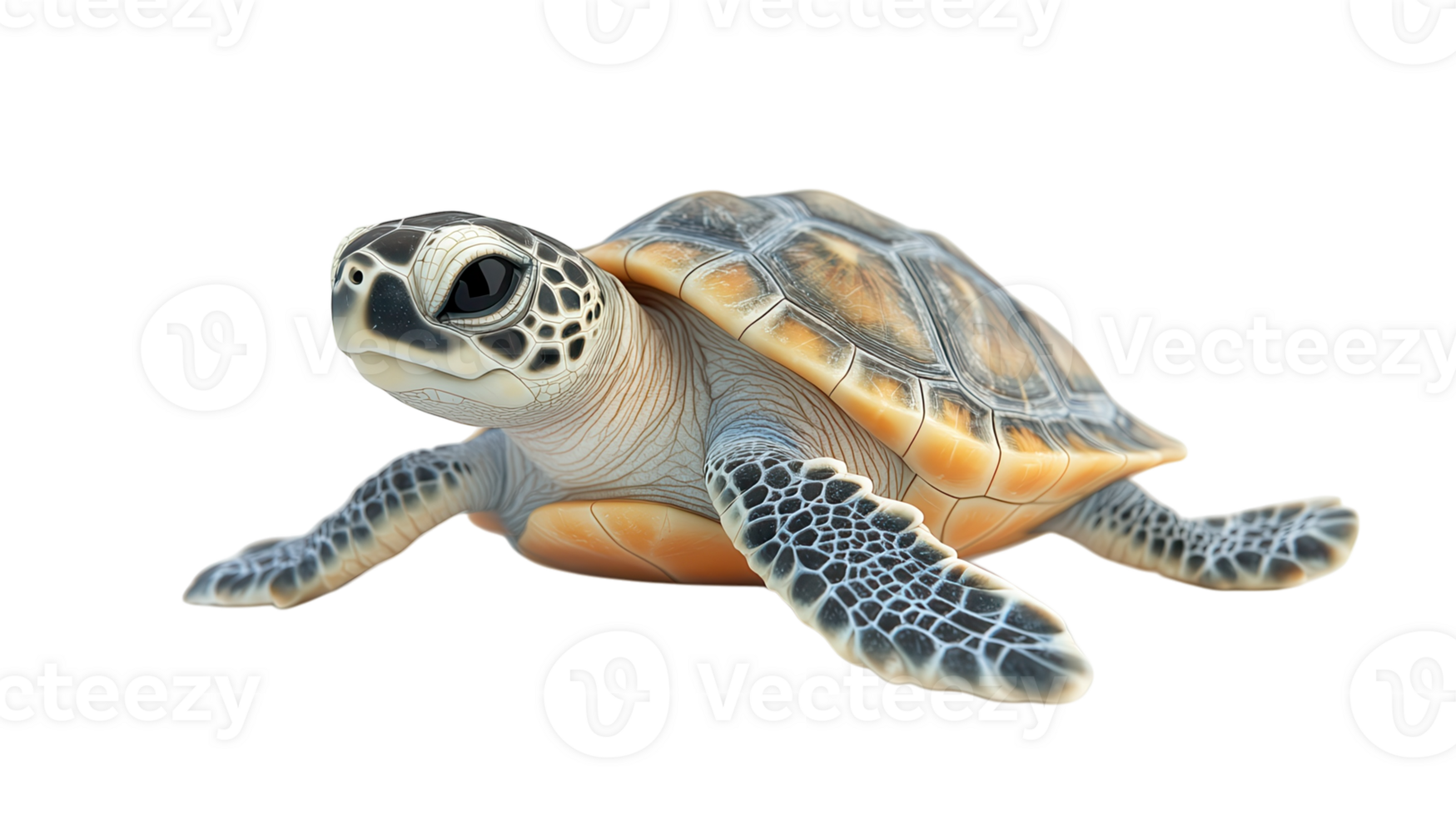 Detailed depiction of a sea turtle resting on a flat surface showcasing its unique shell patterns and textures Pro PNG