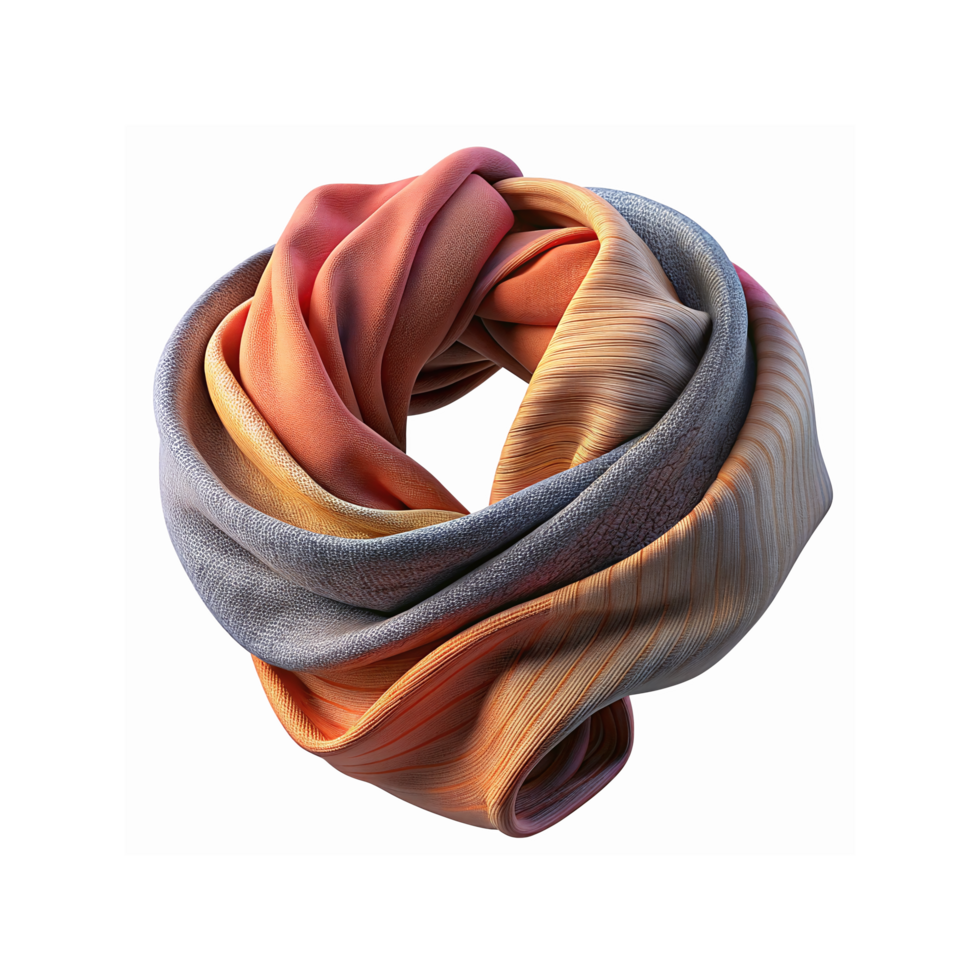 Abstract Twisted Fabric Loop in Gradient Orange and Gray Tones for Design and Art Projects Free PNG