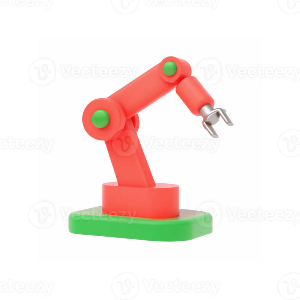 Red Robotic Arm with Green Base and Gripper for Automation and Technology Concepts on Transparent Background Pro PNG