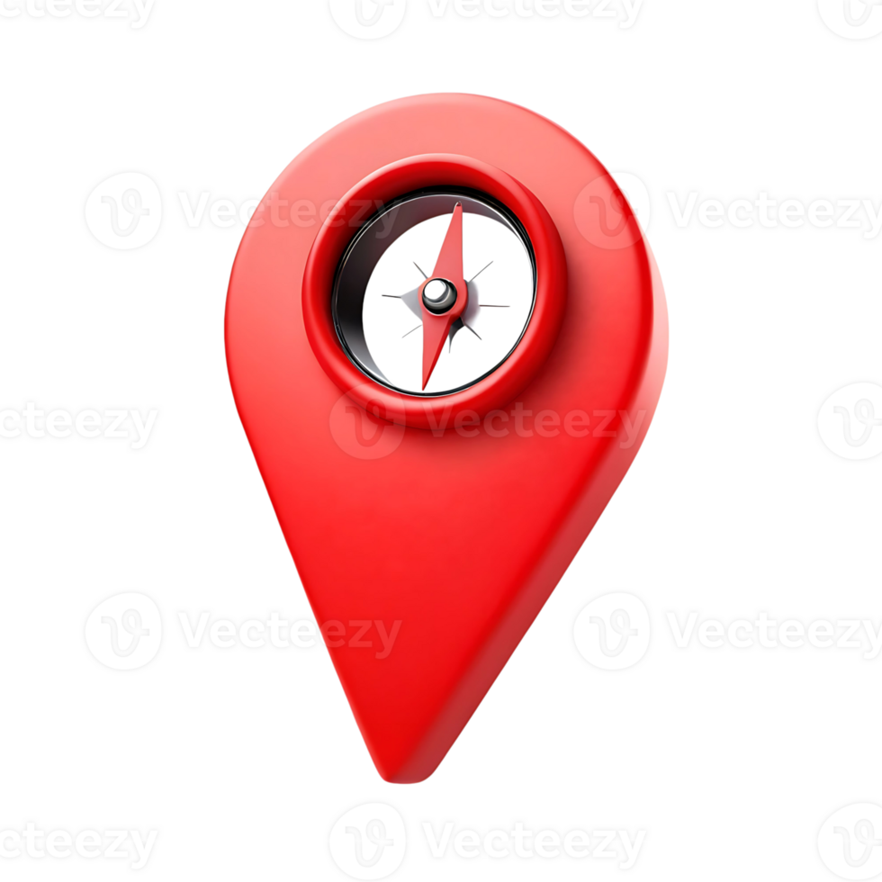 Red Map Pointer with Embedded Compass Navigation System Pro PNG