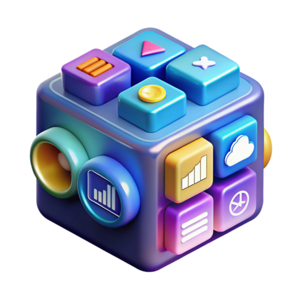 Digital Media Cube Interactive App Icons, UI Design, 3D Render png
