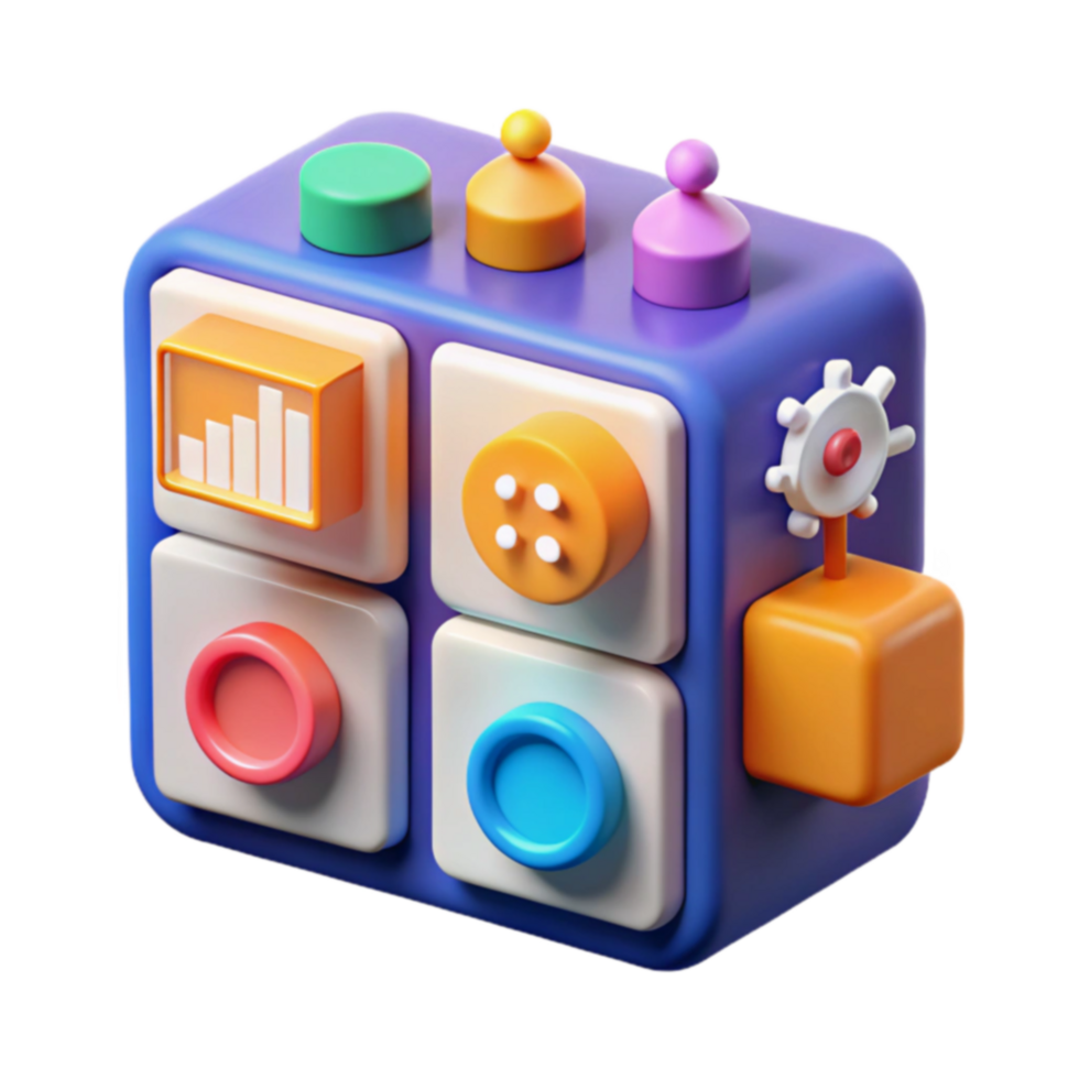 Interactive 3D Control Panel Colorful UI Buttons Data Visualization png