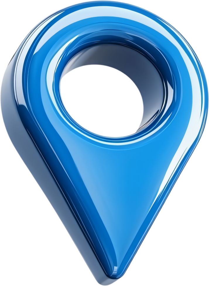 A glossy blue location pin with a hole in the middle stands against a black backdrop, used in mapping and navigation apps for location png