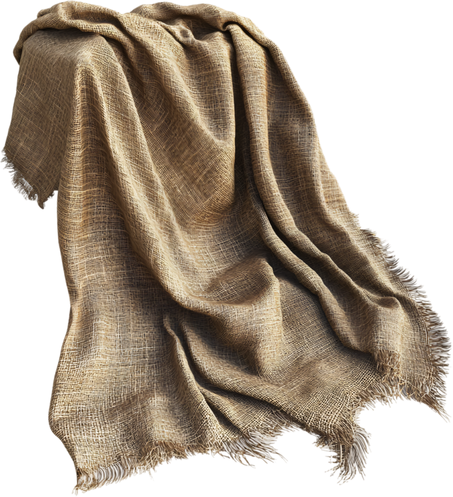 Textured drape in a neutral hue, cascading with subtle shadows. A study in fabric and form, offering a sense of rustic elegance. Free PNG