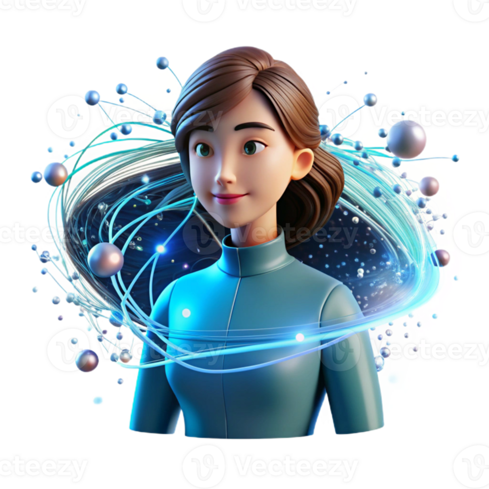 elegant modern elegant creative A woman merging with a digital stream of data, flowing lines and particles, bright and dynamic lighting, abstract style original professional Pro PNG