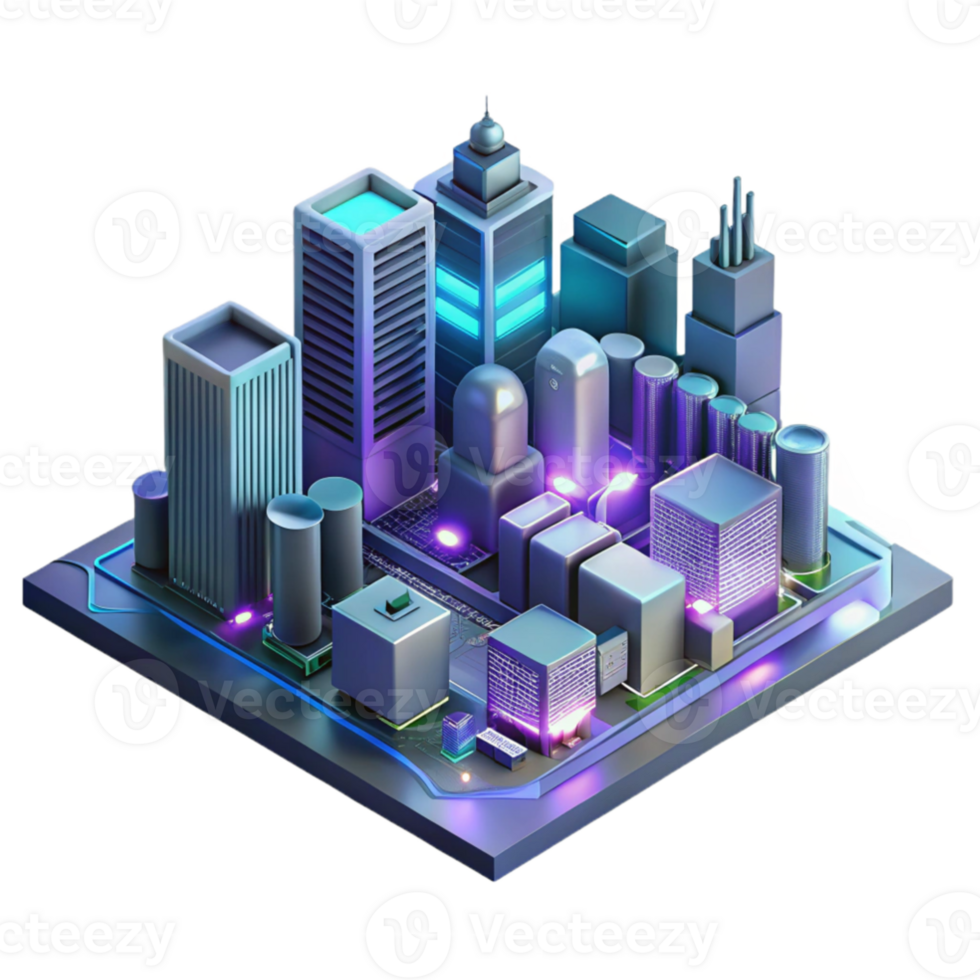dramatic traditional wonderful creative A microscale city built on a circuit board, neon lights and data streams flowing through the structures, cyberpunk style, isometric view authentic detailed Pro PNG