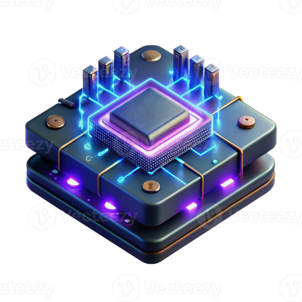 extraordinary creative A single, levitating circuit board, with intricate traces and glowing components, illuminated by dynamic, shifting neon lights. Cyberpunk style, macro photography authentic Pro PNG