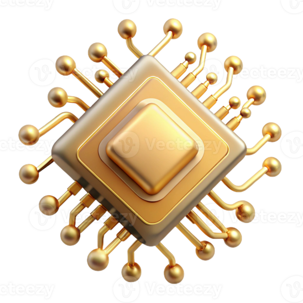 vibrant creative A single microchip, magnified to immense size, golden circuits forming fractal patterns, soft ethereal glow, abstract style authentic Pro PNG