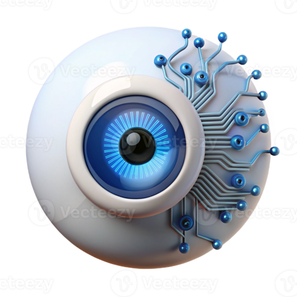 extraordinary rustic wonderful creative A close up of a bionic eye, its iris a complex network of glowing circuits, reflecting a binary code stream, illuminated by a sharp, focused white light... Pro PNG