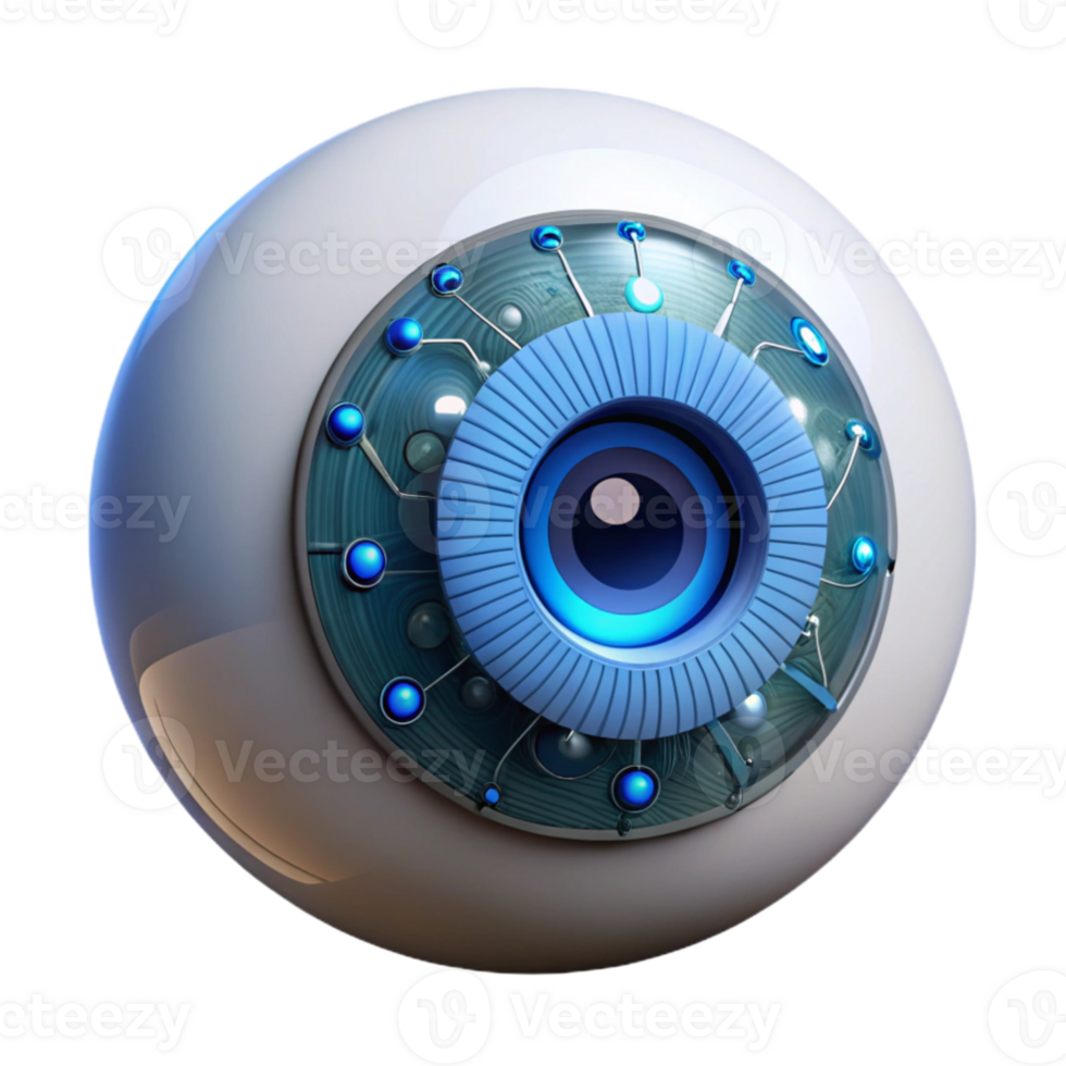 elegant contemporary stunning rustic A close up of a bionic eye, its iris a complex network of glowing circuits, reflecting a binary code stream, illuminated by a sharp, focused white light... Pro PNG