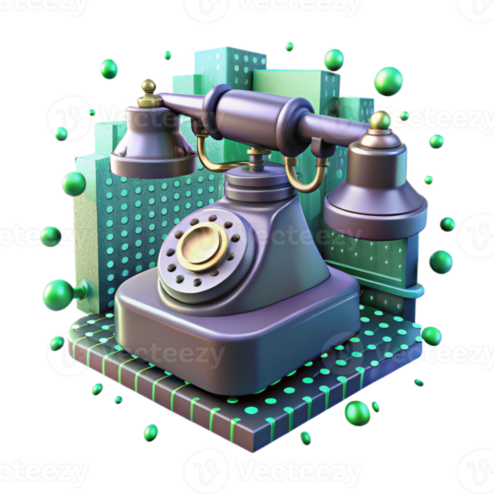 extraordinary minimalist An antique telephone floating in a digital void, surrounded by glitching static and binary code, illuminated by a flickering, green light. Glitch art style high quality Pro PNG