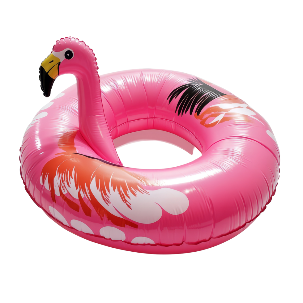 Bright pink flamingo pool float resting on a transparent background, perfect for summer fun and relaxation at the pool, Pink Flamingo Pool Float On transparent background png