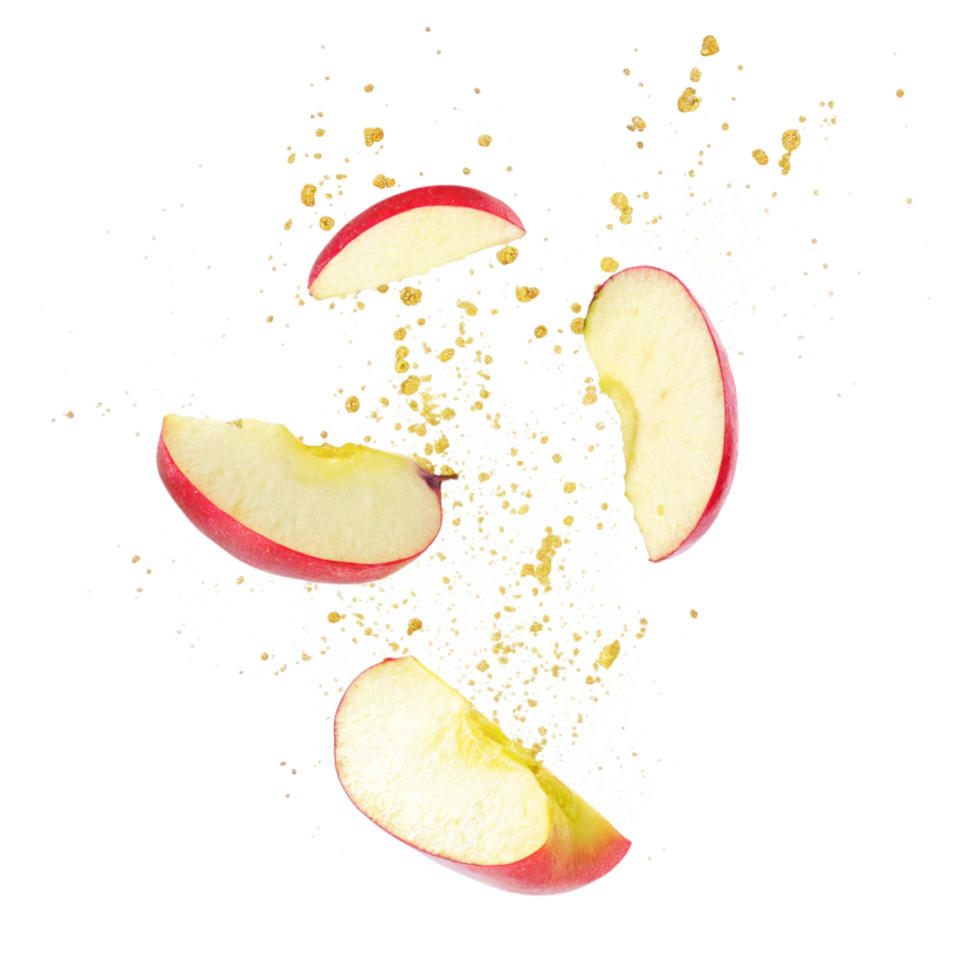 Red Apple Slices Splashing and Exploding in Mid Air with Juice and Particles png