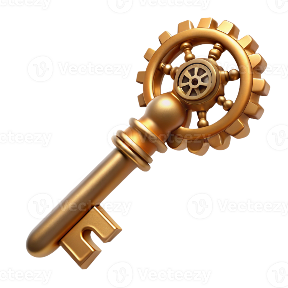 magnificent traditional A steampunk key, with intricate carvings and a clockwork mechanism embedded in the handle. Soft, diffused lighting, antique style, photorealistic rendering original Pro PNG