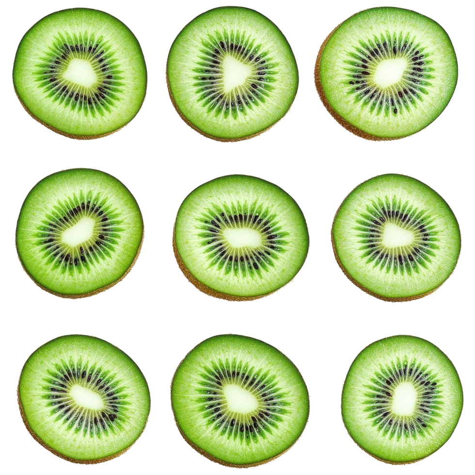 Slices of fresh kiwi fruit arranged in a grid on a clean Transparent background for healthy snacking, Many slices kiwi fruitisolated on background png