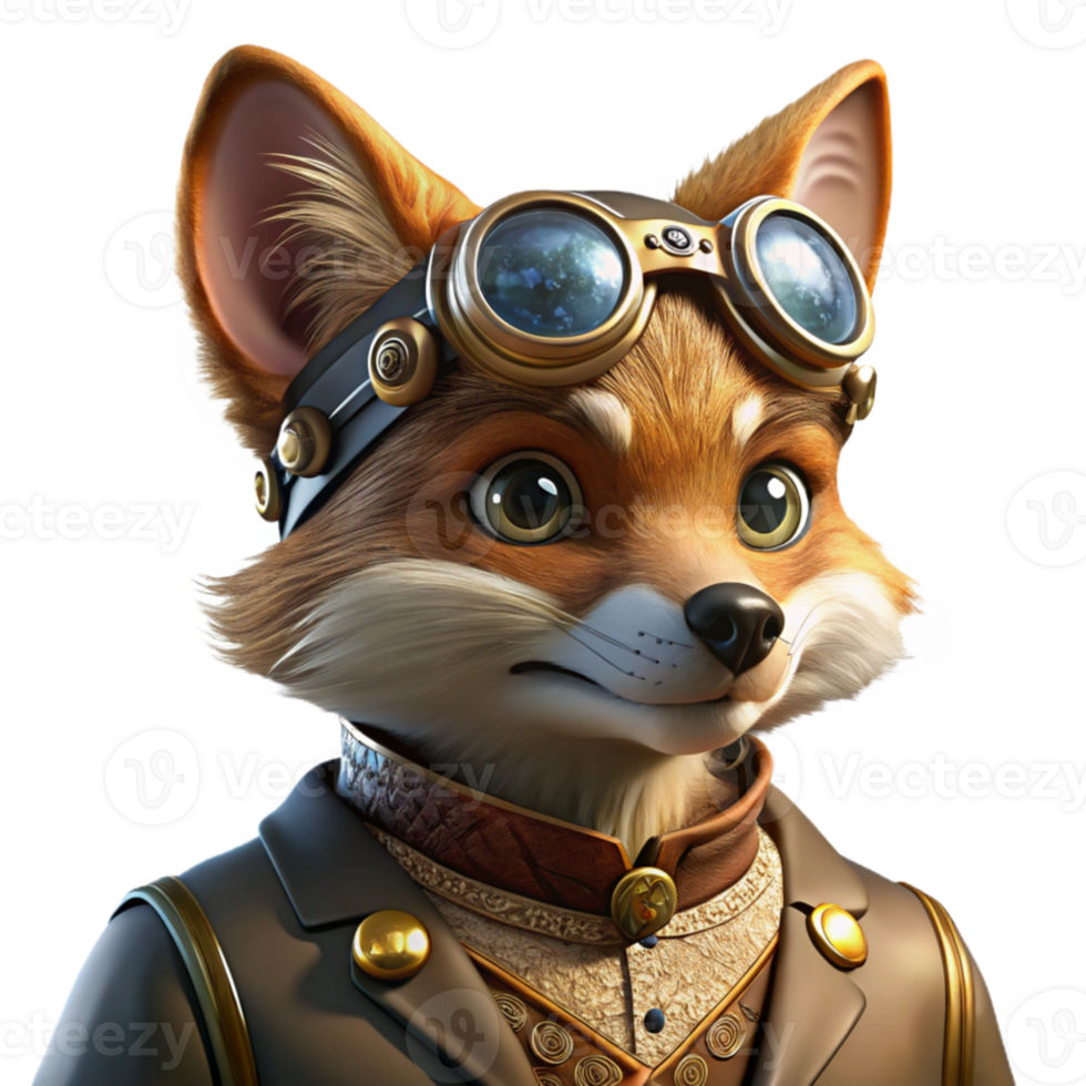 stunning minimalist A portrait of a steampunk fox with goggles and intricate clockwork mechanisms embedded in its fur, lit by a soft, ethereal light 4K Pro PNG