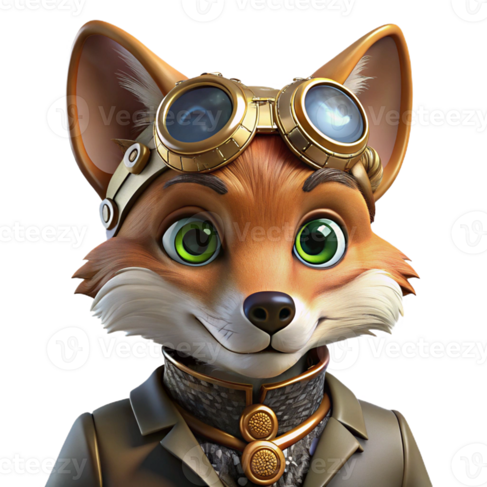 elegant abstract A portrait of a steampunk fox with goggles and intricate clockwork mechanisms embedded in its fur, lit by a soft, ethereal light genuine Pro PNG