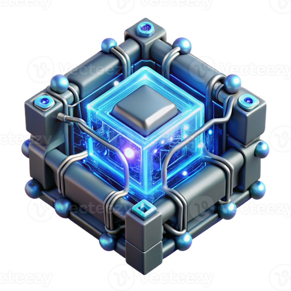 elegant classic A quantum computer core glowing with complex fractal patterns, data streams flowing through crystalline structures, dark background with neon blue accents, abstract style genuine Pro PNG