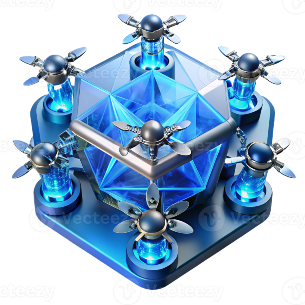 magnificent rustic A swarm of miniature drones assembling a complex crystal lattice structure, lit by cool blue spotlights, in a futuristic style premium Pro PNG