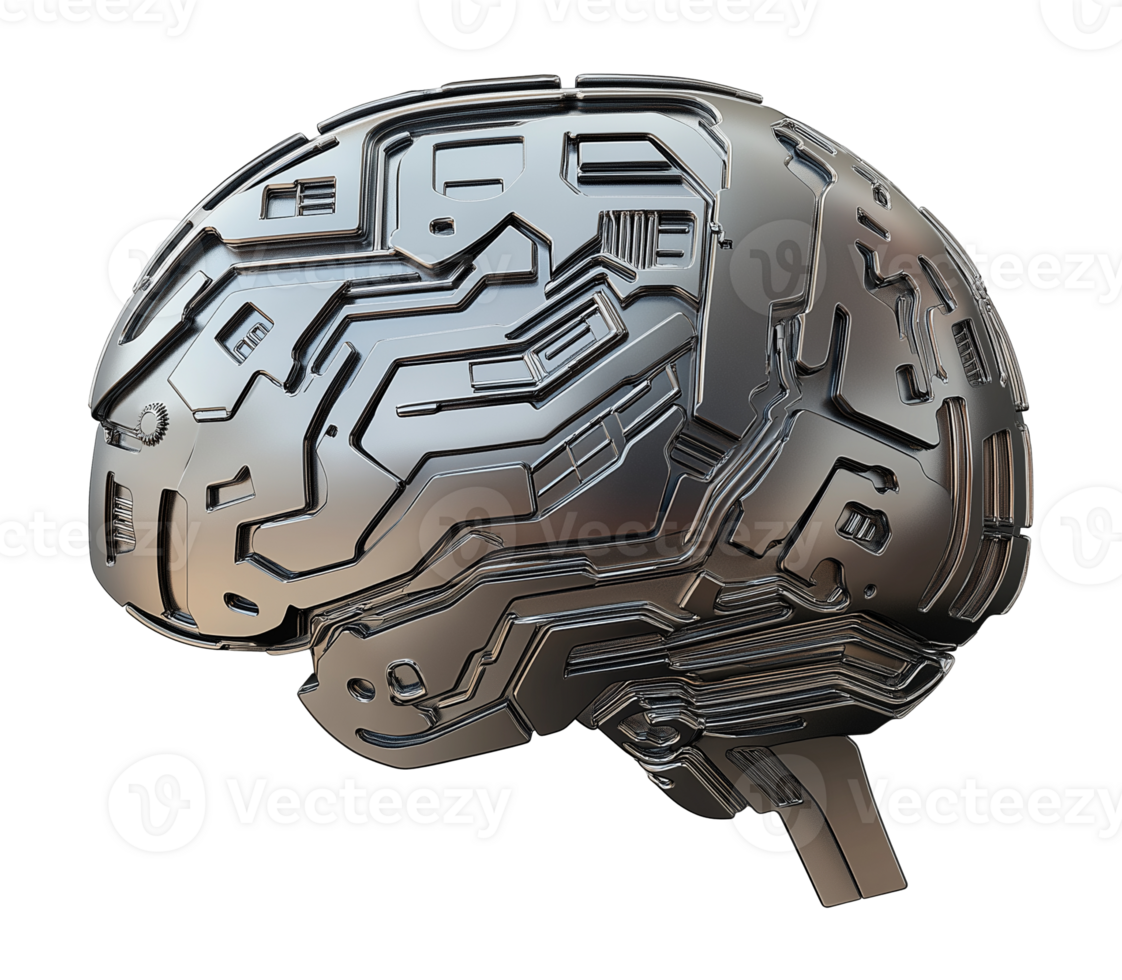 Advanced mechanical cyber brain image isolated transparent. Circuits, synthetic thinking. Machine intelligence cut out. Cybernetic engineering cutout element object photography Pro PNG