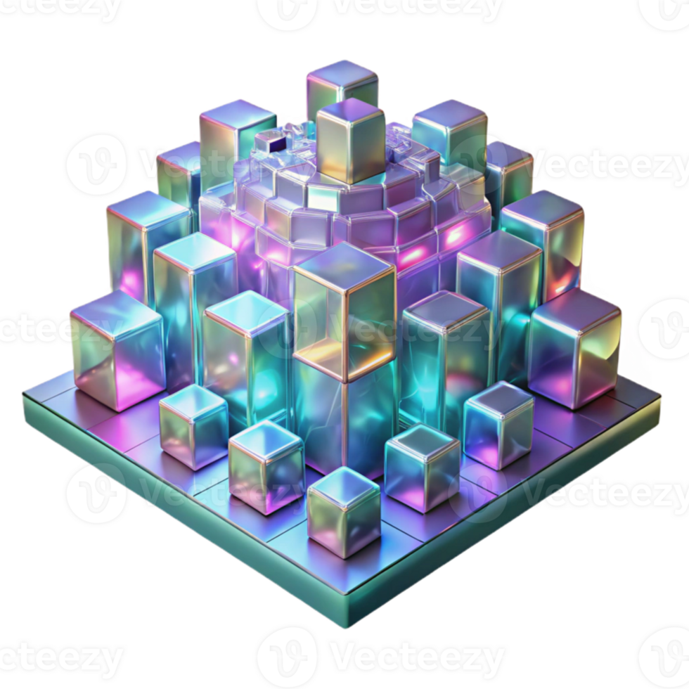 elegant abstract A field of shimmering, holographic pixels, shifting and transforming, illuminated by a cool, neon light, with a glitchy, digital art style authentic Pro PNG