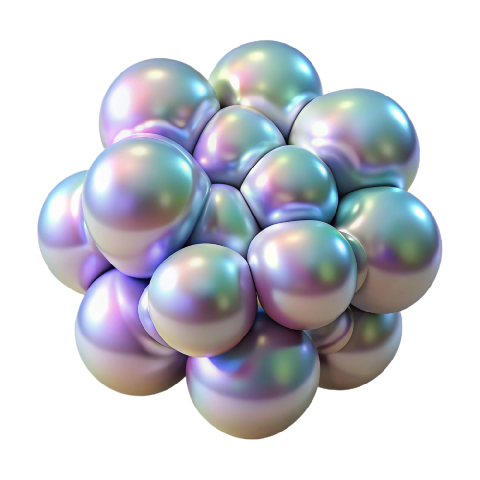 vibrant artistic A cluster of amorphous blobs, with iridescent, pearl-like textures, in a surreal, abstract expressionist style high quality png