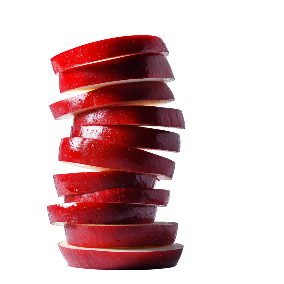 A stack of red sliced apples on a transparent background showcasing freshness and vibrant color, stack of red sliced apples isolated on transparent background png