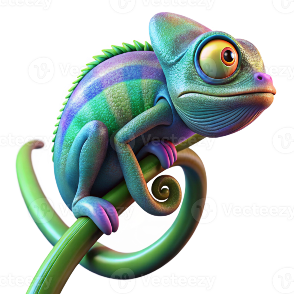vibrant artistic A vibrant chameleon clinging to a lush green vine, displaying an array of iridescent colors, backlighting emphasizing its texture. Macro photography style premium Pro PNG