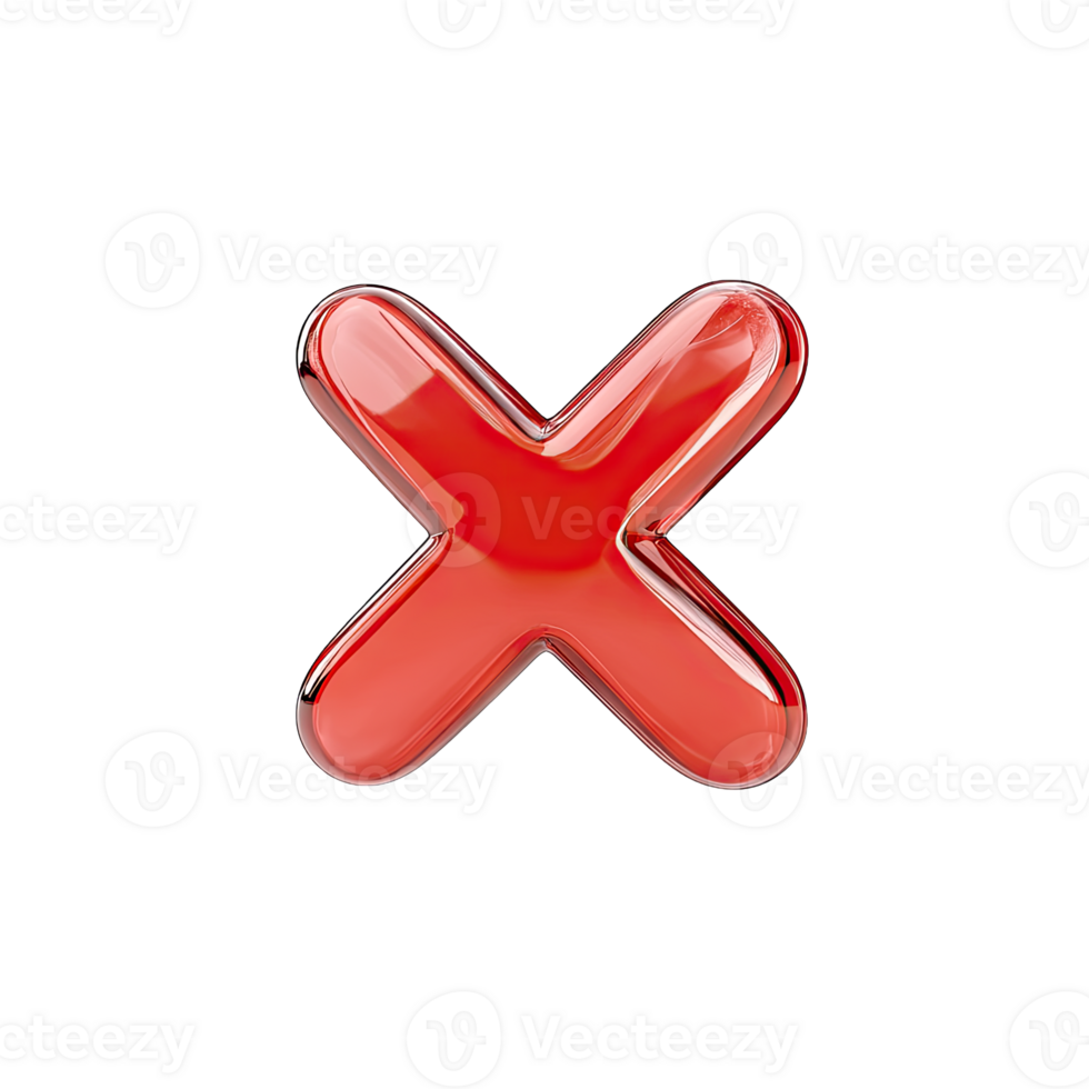 A shiny red x shaped object with rounded edges isolated against a in studio shot transparent background Pro PNG