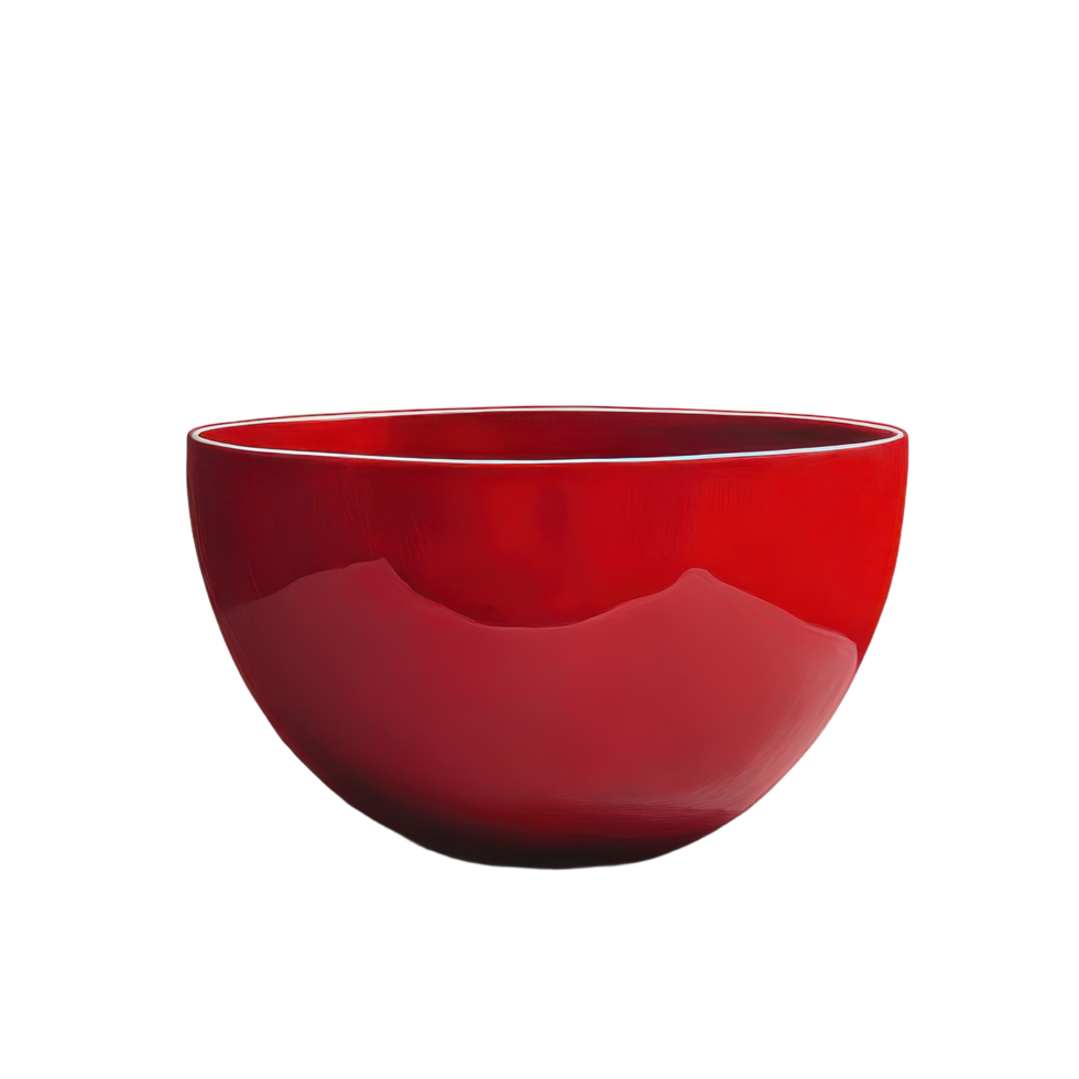 Striking red bowl isolated on Its glossy surface reflects light creating captivating highlights and shadows that emphasize its smooth form png