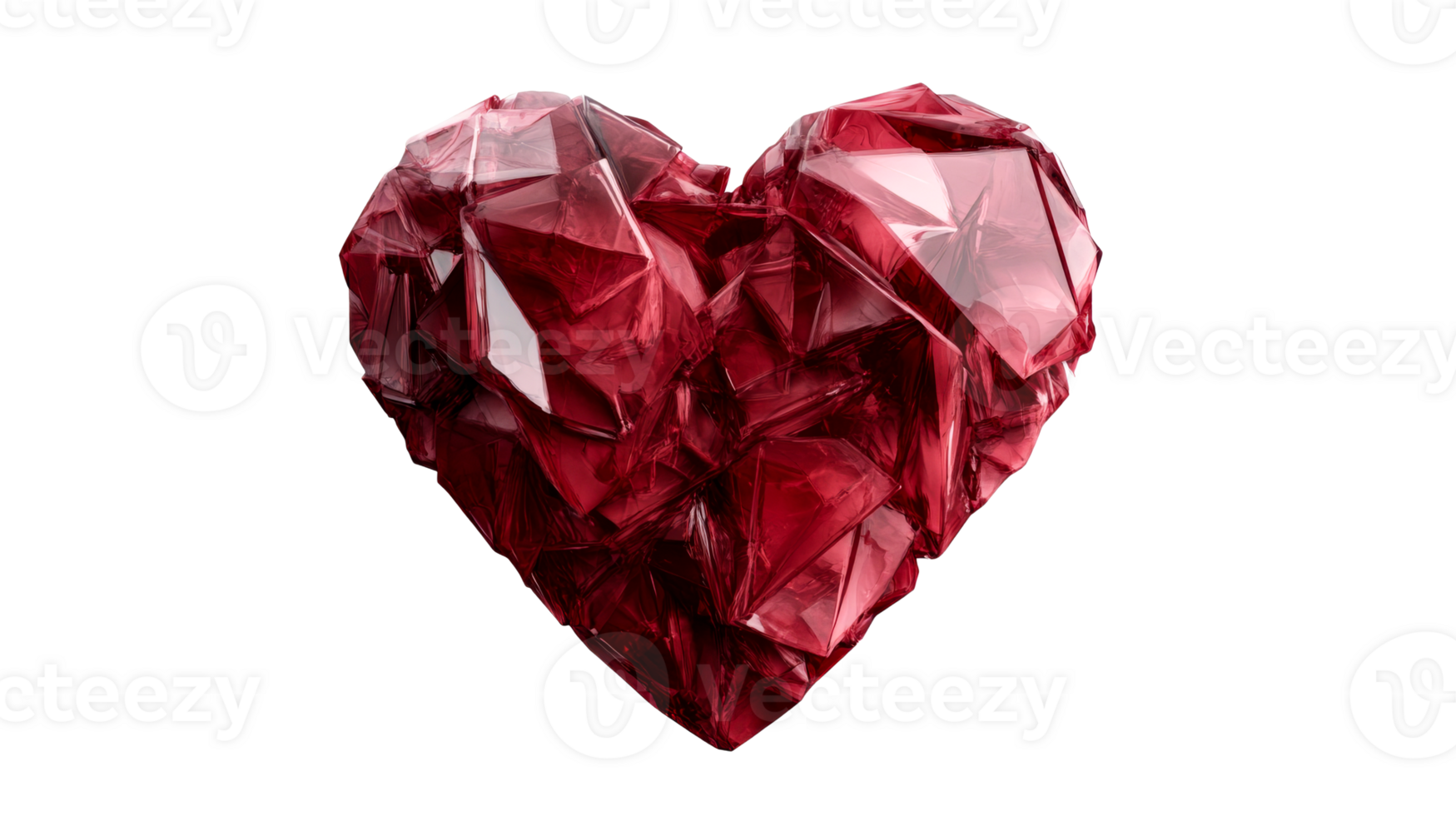 Red crystal heart with sharp edges and a complex pattern, cut out transparent Pro PNG