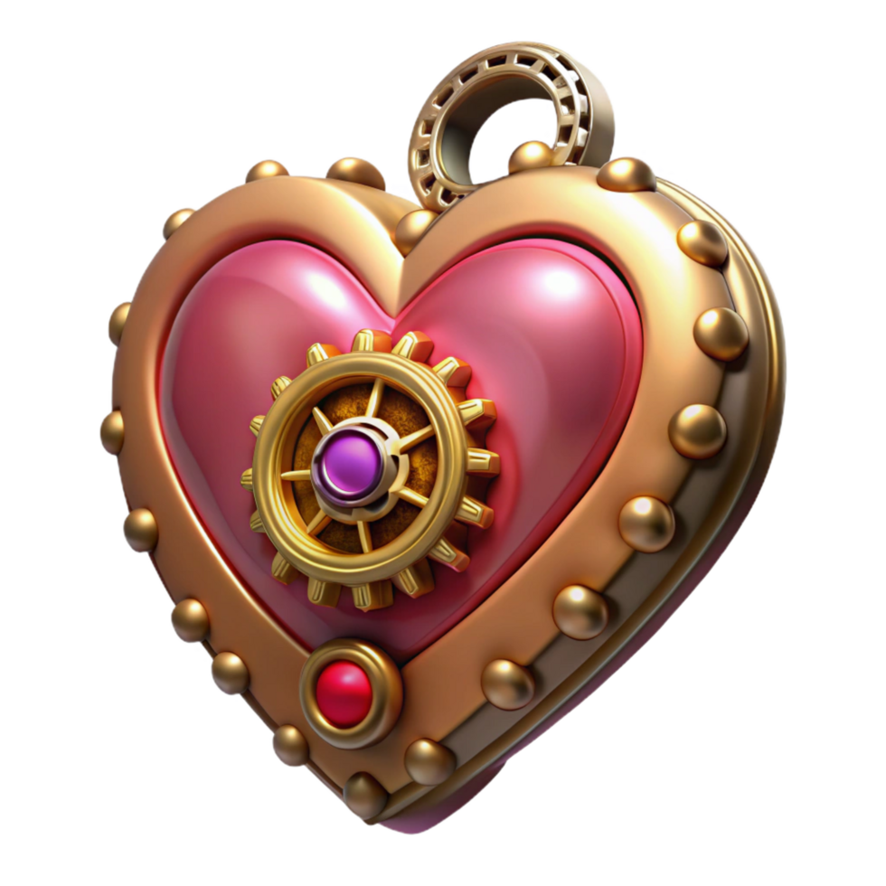 harmonious exquisite Steampunk heart locket with intricate gears and a ruby gemstone. NO BACKGROUND with Transparent Background. authentic png