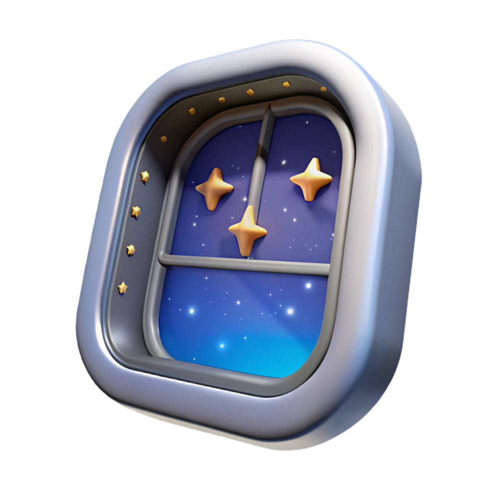pristine unparalleled Spaceship window, futuristic design, view of stars, transparent. NO BACKGROUND with Transparent Background. Free PNG
