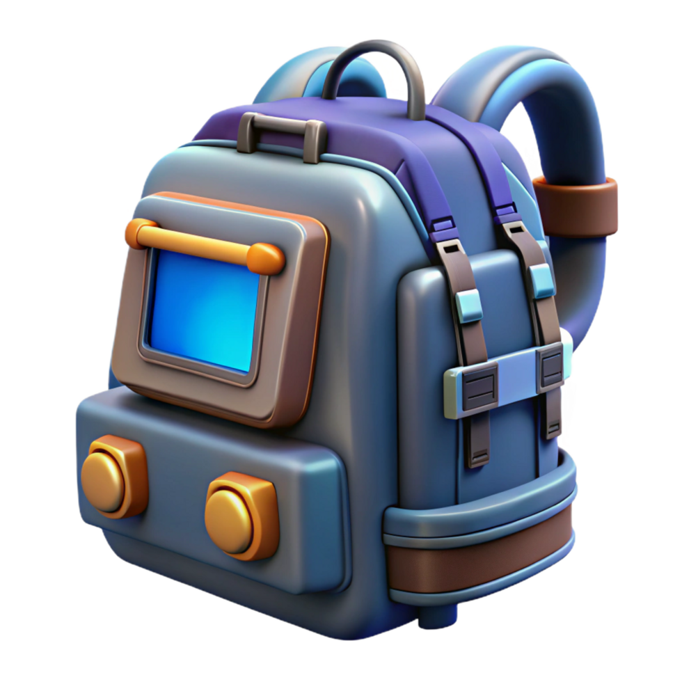 dynamic splendid Cyberpunk backpack with integrated computer system, NO BACKGROUND with Transparent Background. genuine Free PNG