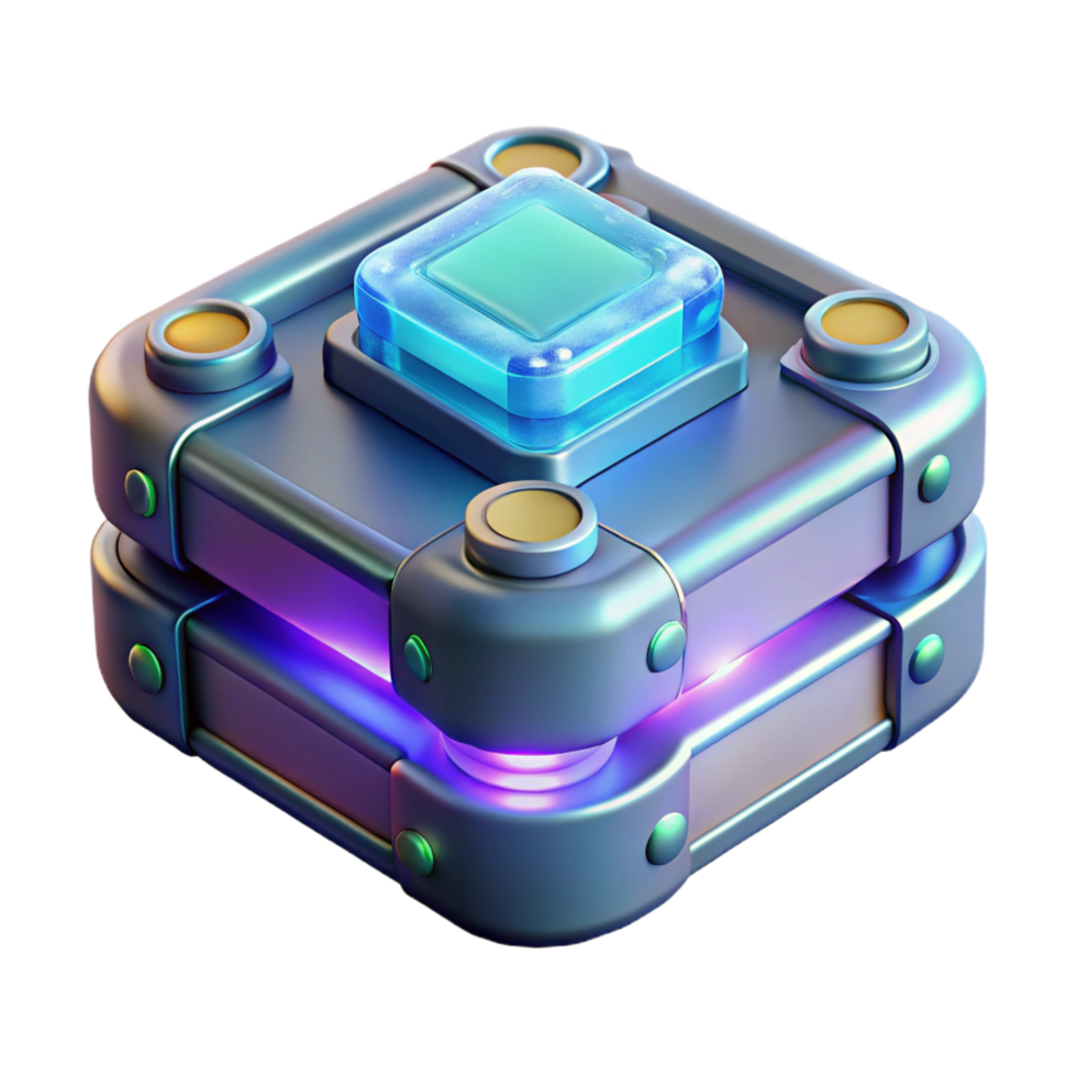 striking unparalleled Futuristic data storage device with holographic interface. NO BACKGROUND with Transparent Background. Free PNG