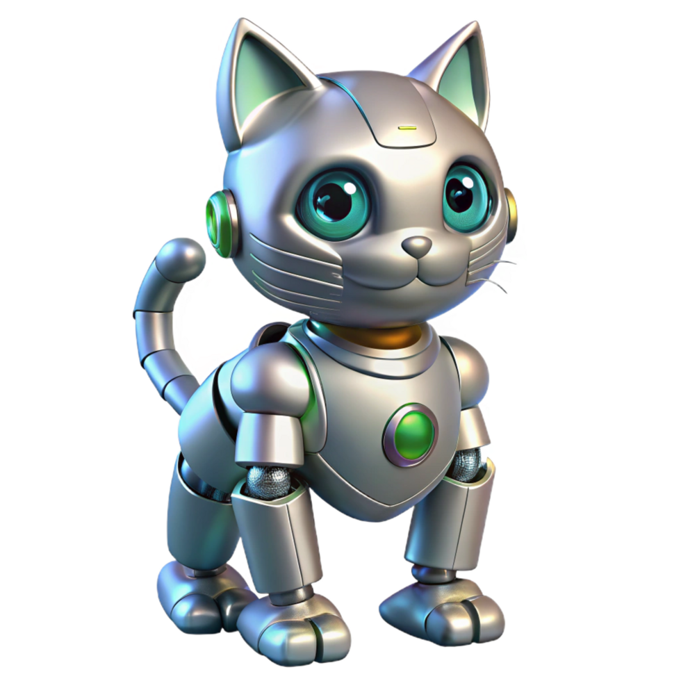 sumptuous coveted Robot cat, metallic, futuristic design, advanced AI, sensors. NO BACKGROUND with Transparent Background. Free PNG