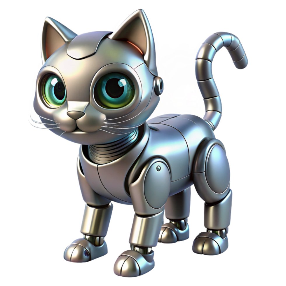 mesmerizing energetic surreal Robot cat, metallic, futuristic design, advanced AI, sensors. NO BACKGROUND with Transparent Background. artisan Free PNG