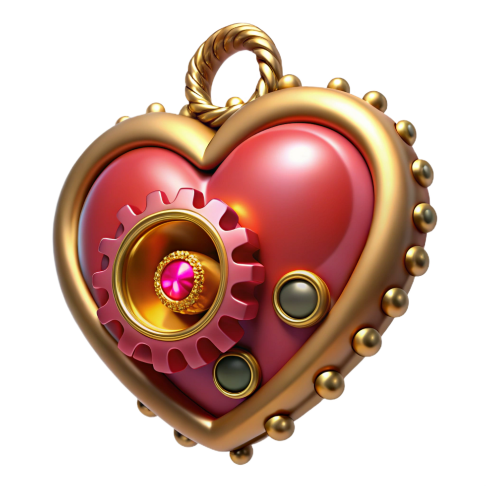 magnificent passionate avant-garde Steampunk heart locket with intricate gears and a ruby gemstone. NO BACKGROUND with Transparent Background. gallery standard Free PNG