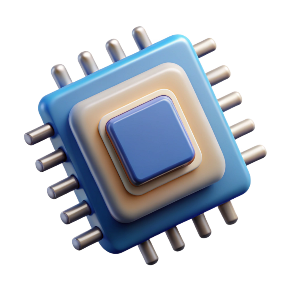 energetic pristine Microchip with intricate circuitry NO BACKGROUND with Transparent Background. 4K Free PNG