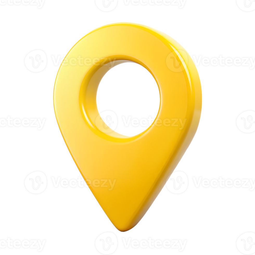 Bright Yellow 3D Location Marker Icon Design Element for Maps Navigation and GPS Applications isolated on white or transparent background Pro PNG