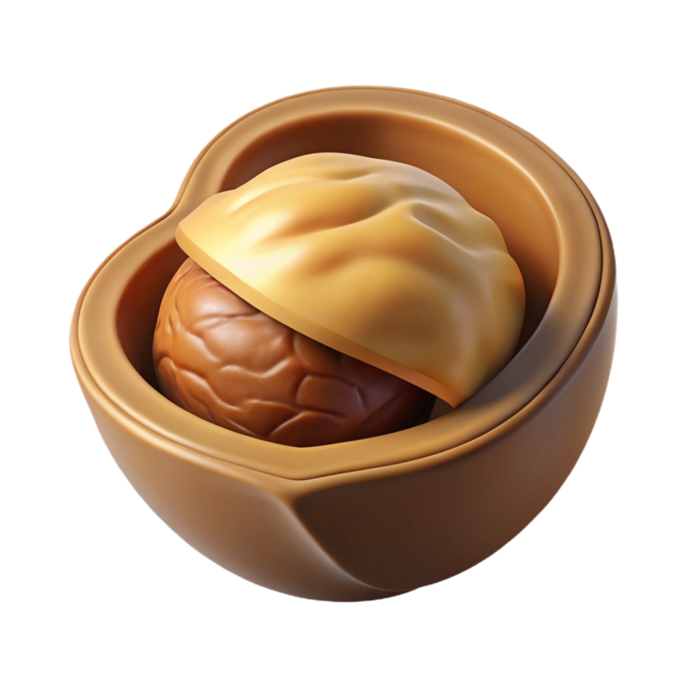 dramatic mysterious rustic Open walnut shell with nut inside with Transparent Background high resolution Free PNG