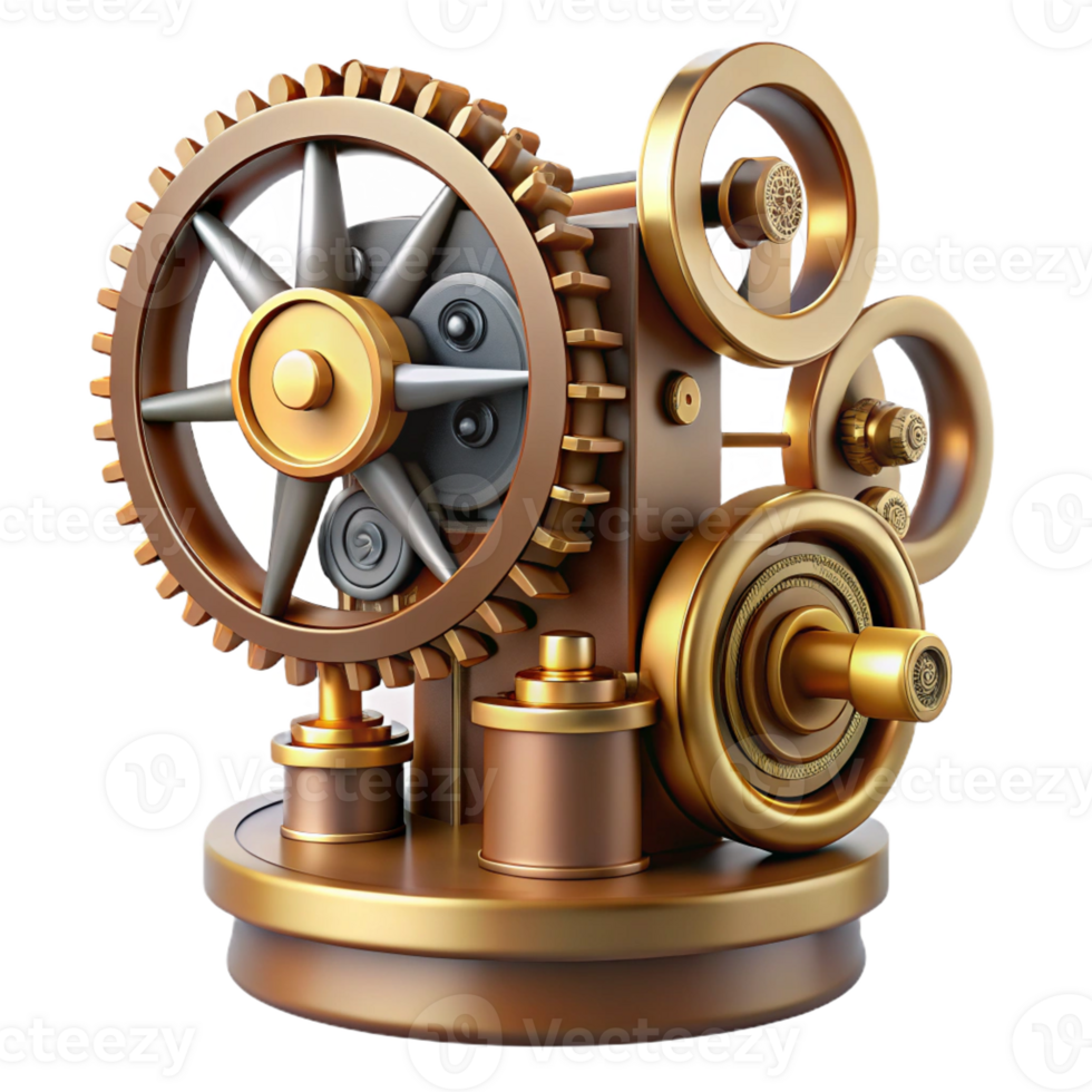 vibrant harmonious victorian Steampunk clockwork device with spinning gears and exposed mechanisms with Transparent Background sharp Pro PNG