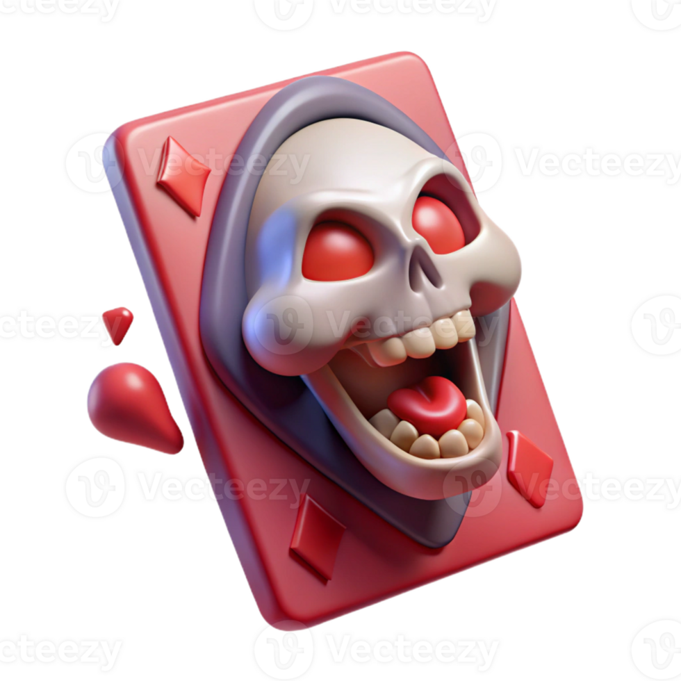 dynamic fascinating Ultra-detailed, concept art style of a floating, single playing card with a face morphing into a screaming skull with Transparent Background detailed Pro PNG